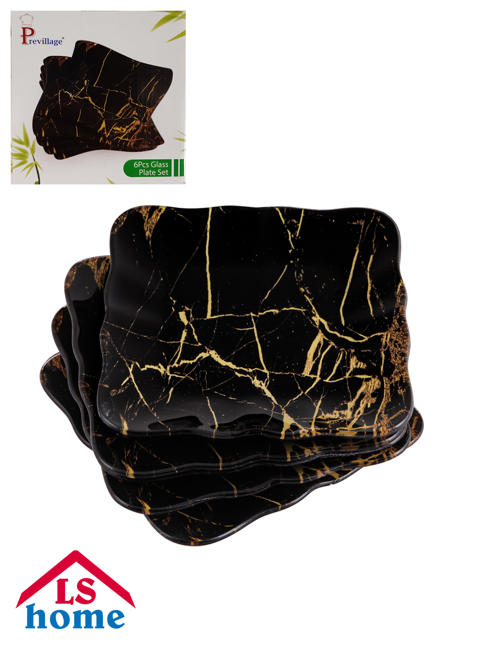 TANJIR 6/1 za kolač dekorativno staklo/15x15cm/black-gold ...