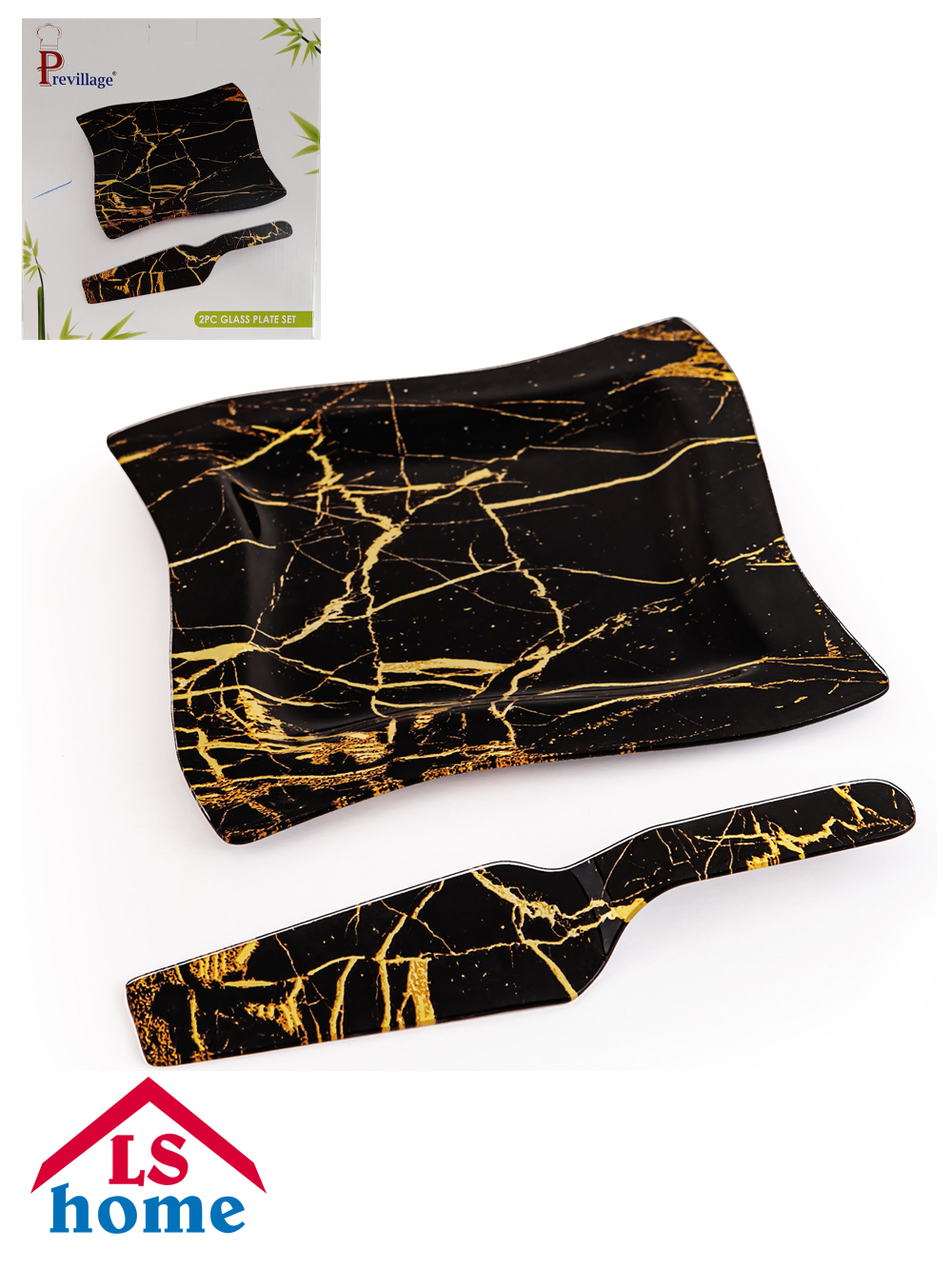 SET 7/1 za kolač dekorativno staklo/black-gold ...