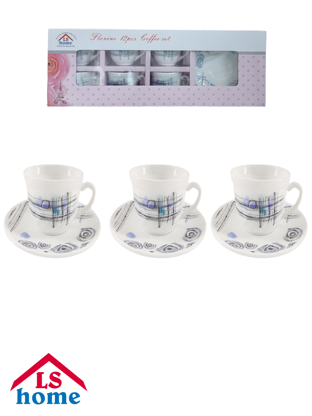 SET ŠALICA 6/1 22cl/četvrtaste/dekor FKFB210FKBD58-6B-K1512 ...