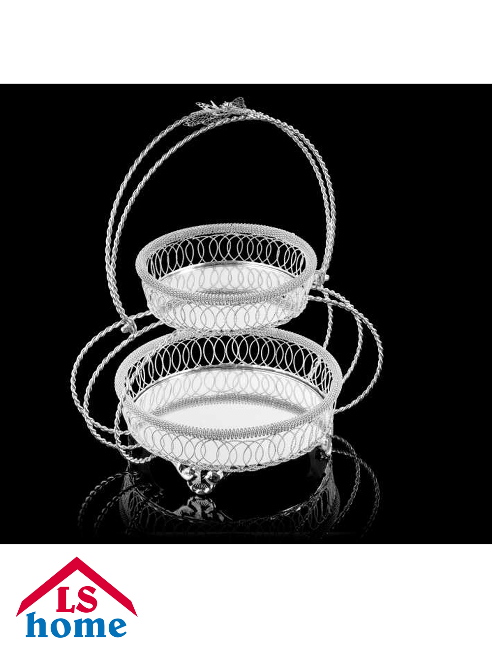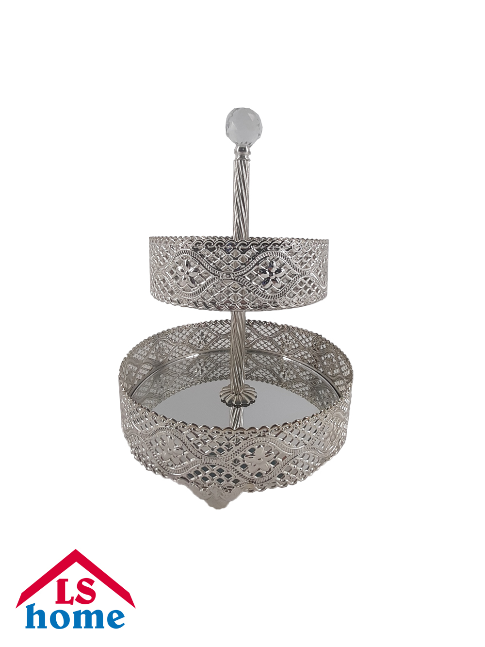 ETAŽER 2/1 ukrasni/na kat/sa ogledalom/silver/okrugli ...