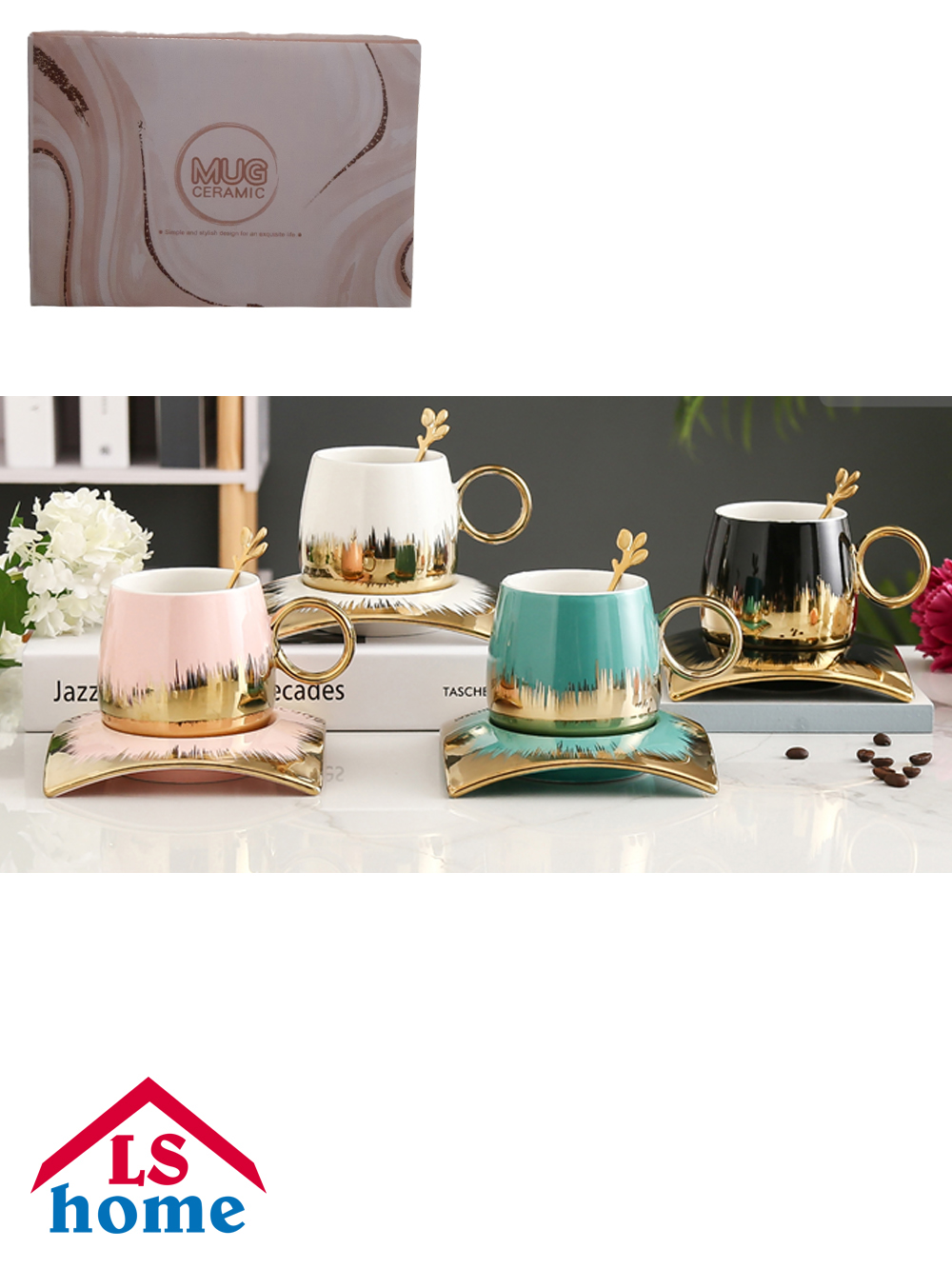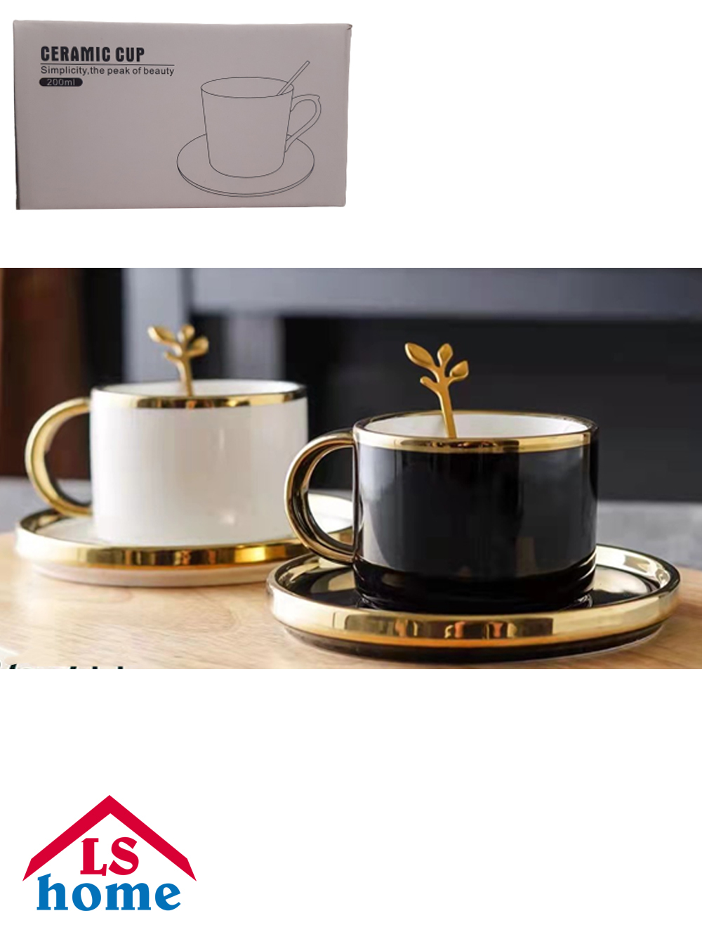 ŠOLJA 1/1 275ml sa tanjirićem i kašikicom/gold ...